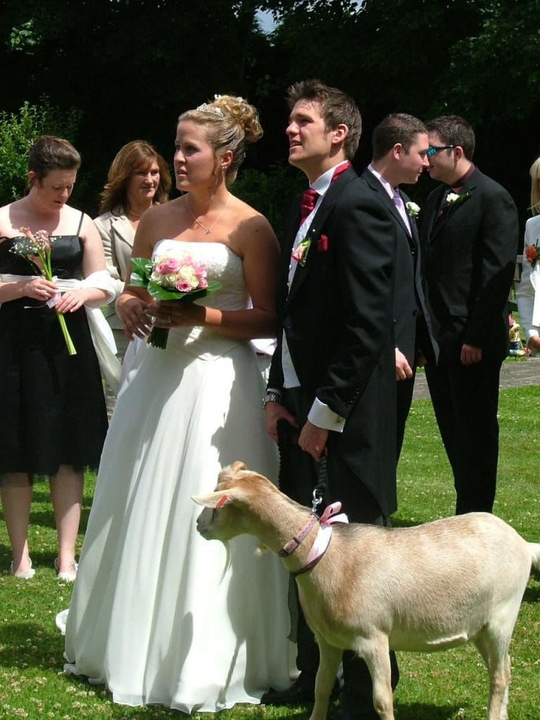 Emma was baptised and made her First Holy Communion at Sacred Heart Hook as well as being one of the first girl servers on the altar. A significant member of the wedding group was Pickle the goat who was one of her bottle feds when she worked for Millers Ark. Guests came from far and wide, including Scotland Wales Cornwall as well as Cape Town South Africa and Richmond Virginia USA.